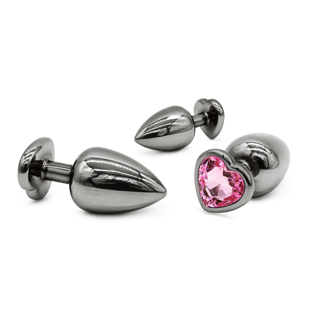 Home > [This product does not support return, please do not purchase return guarantee service]CR-Heart-shaped Gun Color Metal Butt Plug Set Rose Red Base